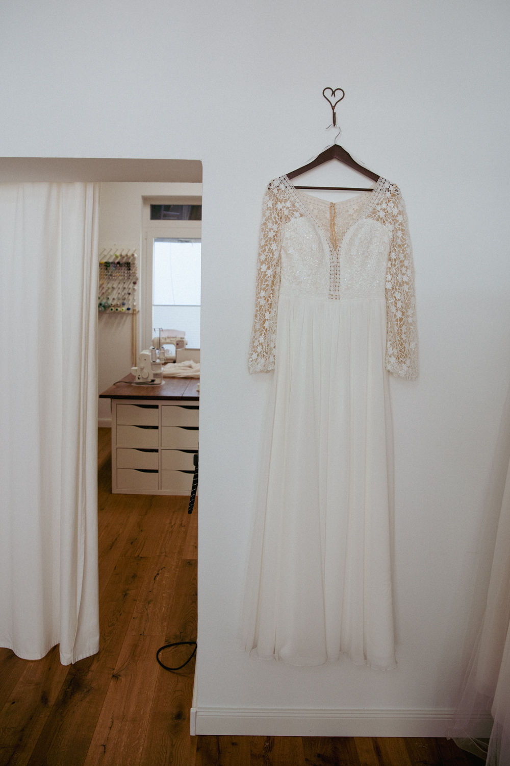 Etwa 6 Wochen vor der Hochzeit vereinbarst du einen Termin bei unserer Schneiderin, um dein Kleid perfekt anzupassen. Die Abholung erfolgt dann eine Woche vor dem großen Tag.