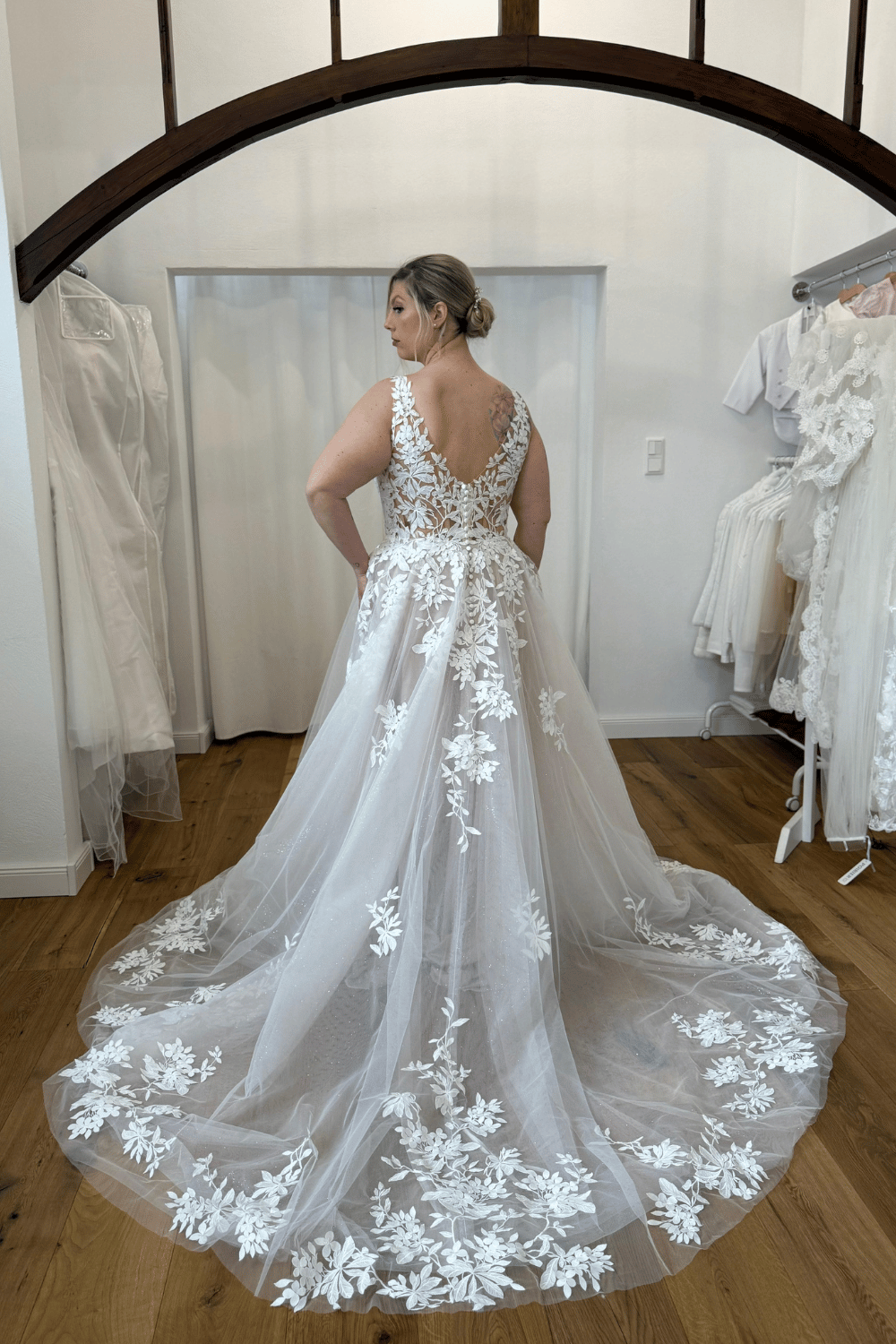 Unsere Curvy Kollektion umfasst neue und preloved Brautkleider in grösseren Konfektionsgrössen. Wir glauben daran, dass jede Körperform schön ist und jedes Kleid perfekt sitzen sollte. Deshalb findest du bei uns Modelle, die Komfort, Stil und Passform vereinen.